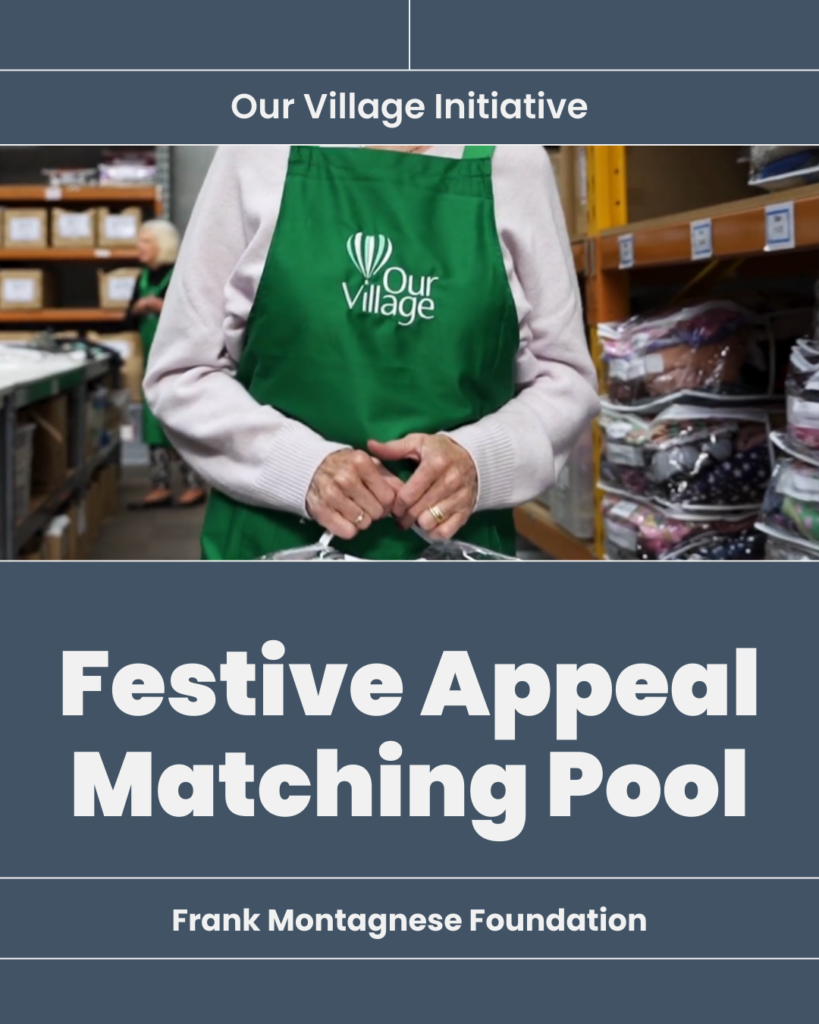 The Frank Montagnese Foundation recently supported Our Village’s Festive Appeal Matching Pool, contributing to an initiative that provides practical support to families experiencing vulnerability during the Christmas period.